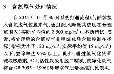 国内首套处理含氯有机废气的蓄热燃烧反应器完成安装调试后,应用于中国石化“碧水蓝天”项目之一的有机废气处理项目上,成功实现了对油田表面活性剂、氯化苯、硝基氯苯等生产装置的精馏真空系统、储罐及原氯化苯废气吸收吸附系统产生的含氯废气进行集中治理,使排放气中苯、氯苯、非甲烷总烃、HC1、二嗯英等含量均符合有关排放标准,最终实现了达标排放。